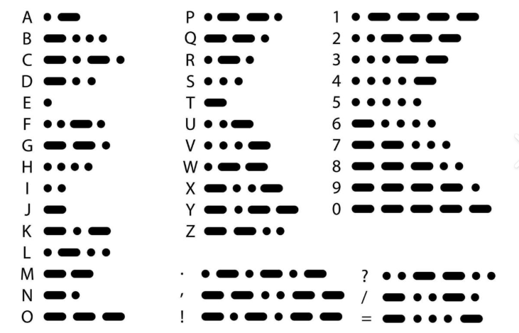 摩尔斯电码由美国发明家塞缪尔·摩尔斯(Samuel Morse)于1830年代发明,是一种通过点和划(短信号和长信号)来表示字母、数字和符号的编码方式。